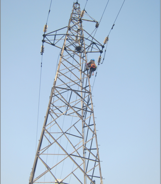圖為砍伐高壓輸電塔保護區(qū)的超高樹木,對廠區(qū)終端桿鐵塔進行了清理鳥窩、雜草。