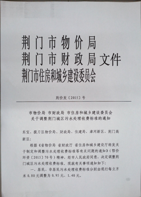 關(guān)于調(diào)整城區(qū)污水處理收費(fèi)標(biāo)準(zhǔn)的通知