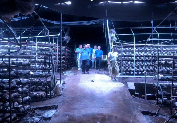 他們到雄峰村香菇基地,了解生產(chǎn)銷售情況。