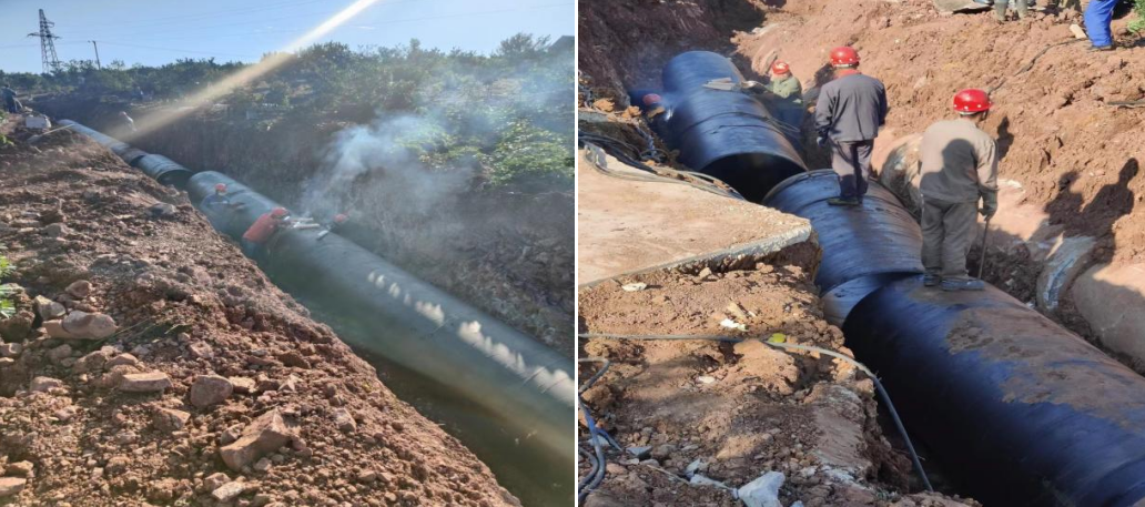 各部門精誠合作,克服復(fù)雜地形、調(diào)度和運(yùn)輸困難等諸多不利因素,堅(jiān)守施工現(xiàn)場(chǎng),搶抓施工進(jìn)度,終于在12日晚6點(diǎn)完成70米DN1200鋼管焊接任務(wù),10月14日進(jìn)行管道試壓及沖洗消毒,恢復(fù)正常供水。