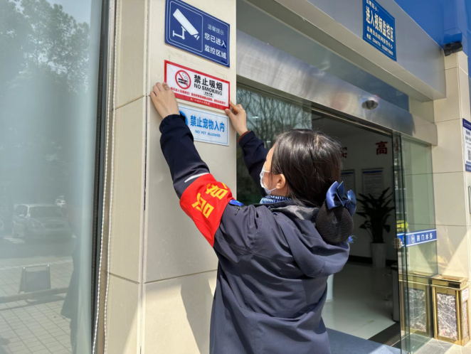 服務(wù)窗口樹形象。窗口單位管理人員帶頭,全員上陣,對標(biāo)復(fù)審要求逐一排查整改。城區(qū)四個營業(yè)廳更換破損缺失的文明標(biāo)識標(biāo)語、健康教育專欄12處,增設(shè)“無障礙通道”“創(chuàng)城宣傳取閱點(diǎn)”等提示標(biāo)識,亮化了窗口辦公環(huán)境,提升了窗口文明形象。