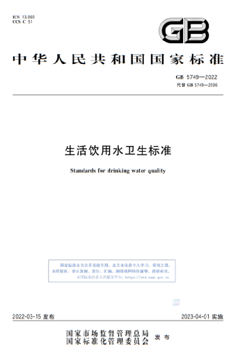 為了飲用水的安全和質(zhì)量更加符合國情,國家市場監(jiān)督管理總局和國家標(biāo)準(zhǔn)化管理委員會于2022年3月15日發(fā)布了強制性國家標(biāo)準(zhǔn)GB5749-2022《生活飲用水衛(wèi)生標(biāo)準(zhǔn)》(以下簡稱“新標(biāo)準(zhǔn)”),并于2023年4月1日正式實施。新標(biāo)準(zhǔn)水質(zhì)指標(biāo)由之前的106項調(diào)整為97項,水質(zhì)參考指標(biāo)由28項調(diào)整為55項。