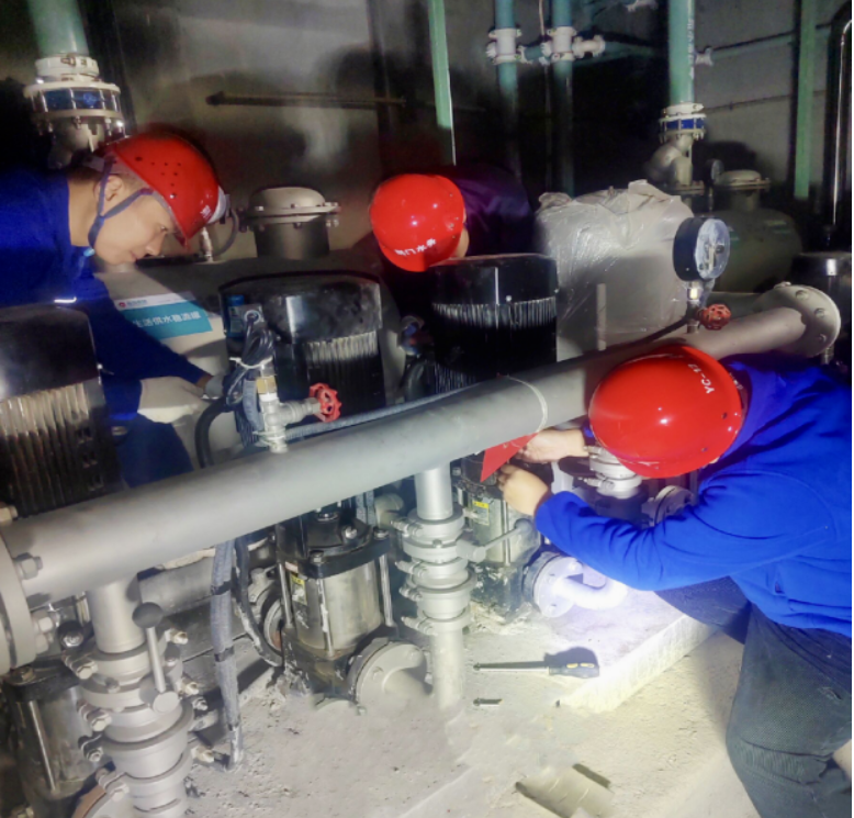 [圖中左一為更換的新泵機]