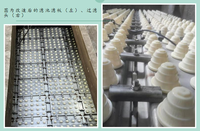 今年,一水廠通過改造濾池,再換“新顏”。經(jīng)過前期市場調(diào)研和試用,集團(tuán)采用新型不銹鋼濾板加濾頭,替代原先的濾磚,不僅提高了過濾效率和過濾后水質(zhì),還提高了廠內(nèi)設(shè)備的運(yùn)行效率。改造后,水廠水濁度保持在0.3NTU-0.4NTU,較之前降低了30%,水質(zhì)提升效果顯著。