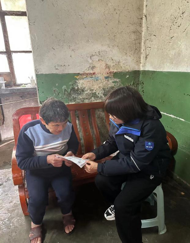 圖為工作人員為老人送票上門,并溝通用水情況