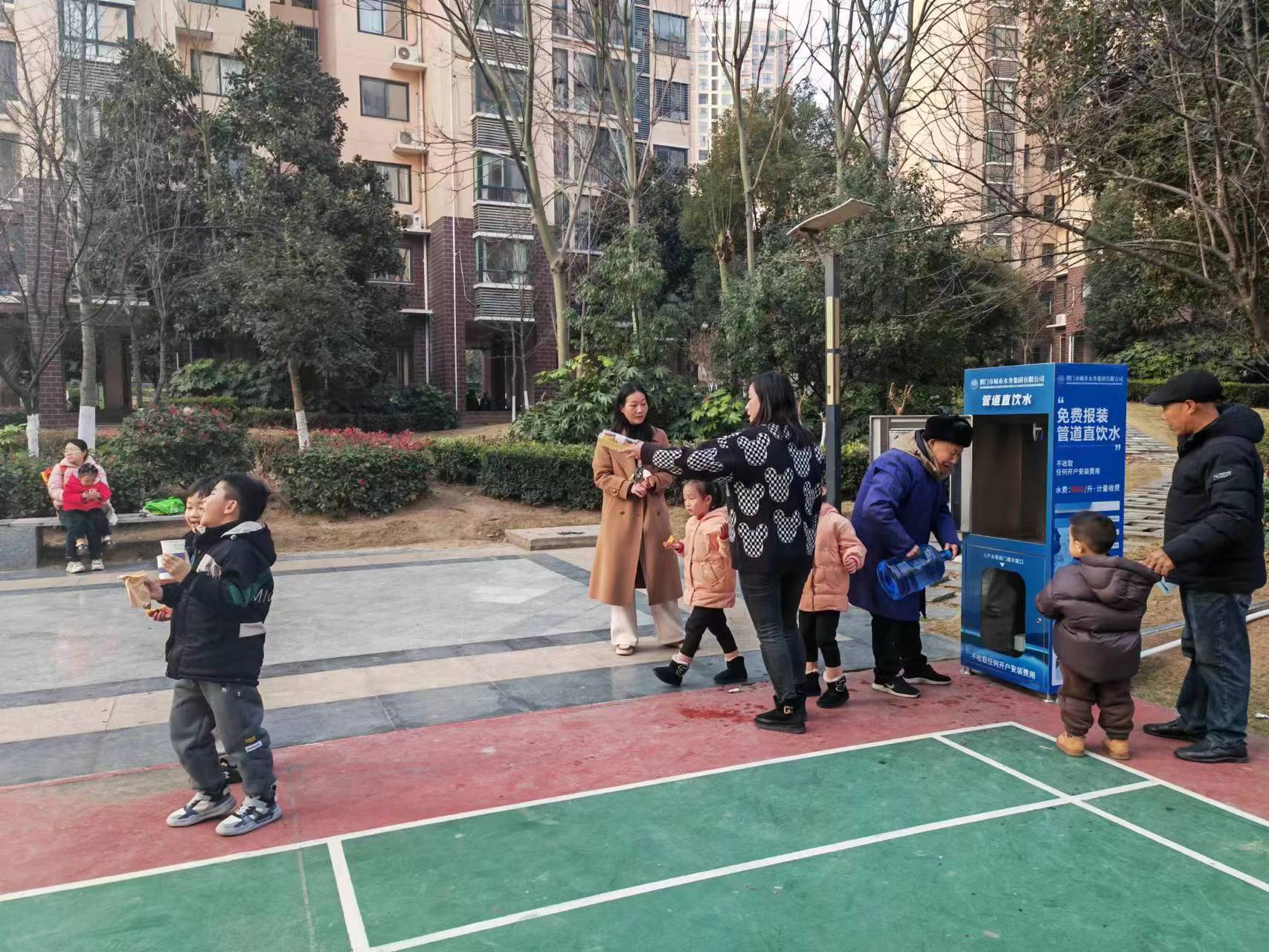 圖為小區(qū)居民免費體驗管道直飲水