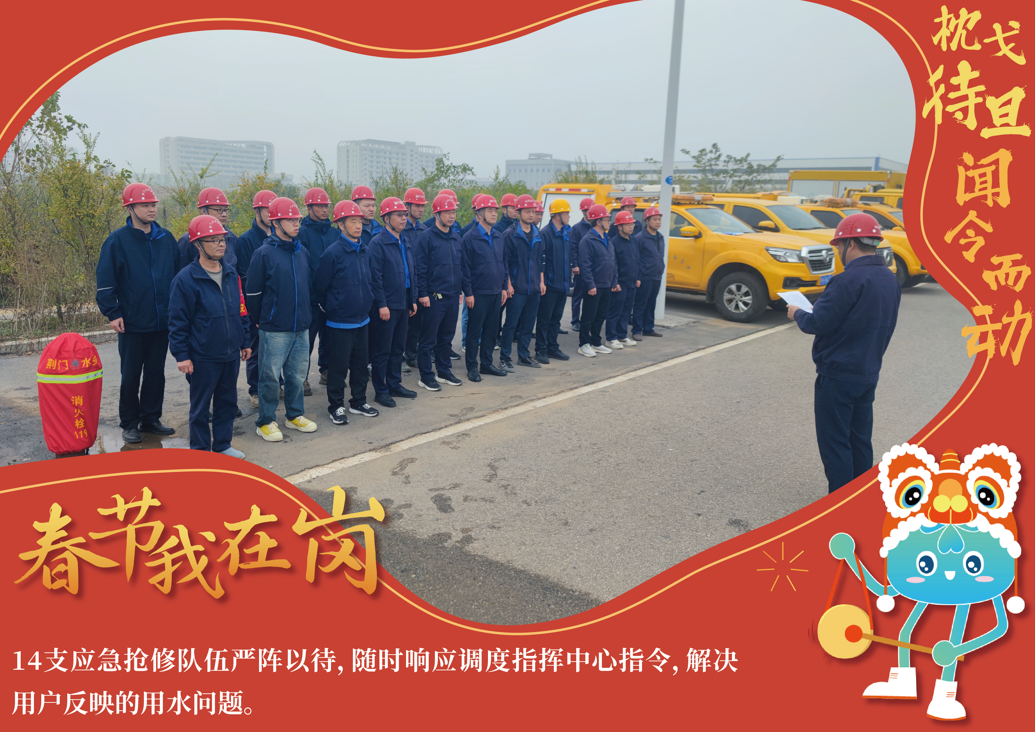 春節(jié)期間,在崗值守的水務(wù)鐵軍們將堅(jiān)持用戶至上服務(wù)宗旨,默默守候在城市的各個(gè)角落,陪伴廣大市民用戶歡度新春佳節(jié)。