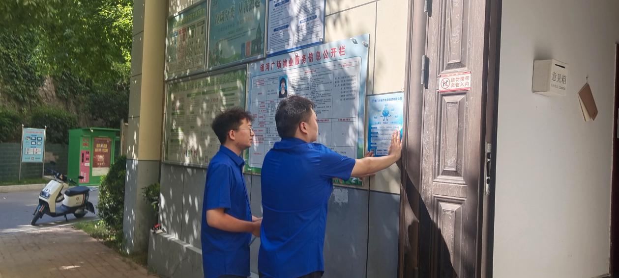 工作人員入小區(qū)張貼網(wǎng)格化服務(wù)公示牌
