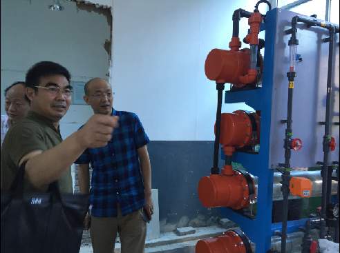 一水廠為城市備用水廠,始建于1969年,以前凈化工藝采取傳統(tǒng)的加氯(氯氣瓶?jī)?chǔ)存供應(yīng))方式,考慮到一水廠地處省重點(diǎn)中學(xué)龍泉中學(xué)旁,人口密集,存在危化品泄漏安全隱患,公司通過考察,慎重決策,在內(nèi)地(目前僅在沿海地區(qū)發(fā)達(dá)城市應(yīng)用)首家引進(jìn)次氯酸鈉加氯(電解反應(yīng),邊制造邊供應(yīng))方式,投資50萬進(jìn)行工藝改造,徹底解除這一公共安全隱患。在改造現(xiàn)場(chǎng),公司黨委書記、總經(jīng)理陳永根要求,一水廠次氯酸鈉加氯改造項(xiàng)目要加快建設(shè),確保6月底前投運(yùn),同時(shí)要做好職工培訓(xùn)工作,確保人人能按新工藝規(guī)程進(jìn)行熟練操作,確保公共安全。