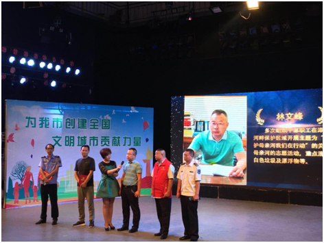 漳河是荊門人民的母親河。從事供水事業(yè)近30年以來,無論酷暑嚴(yán)寒、刮風(fēng)下雨,林文峰堅(jiān)持每天巡查水源保護(hù)區(qū),帶領(lǐng)水廠員工清理取水口周邊雜物,確保水源干凈整潔和供水安全優(yōu)質(zhì)。頒獎(jiǎng)典禮上,林文峰現(xiàn)場講述了近二十年持之以恒的水源地環(huán)保行動(dòng),樸實(shí)無華卻震撼心靈,為廣大市民樹立了環(huán)保典范。