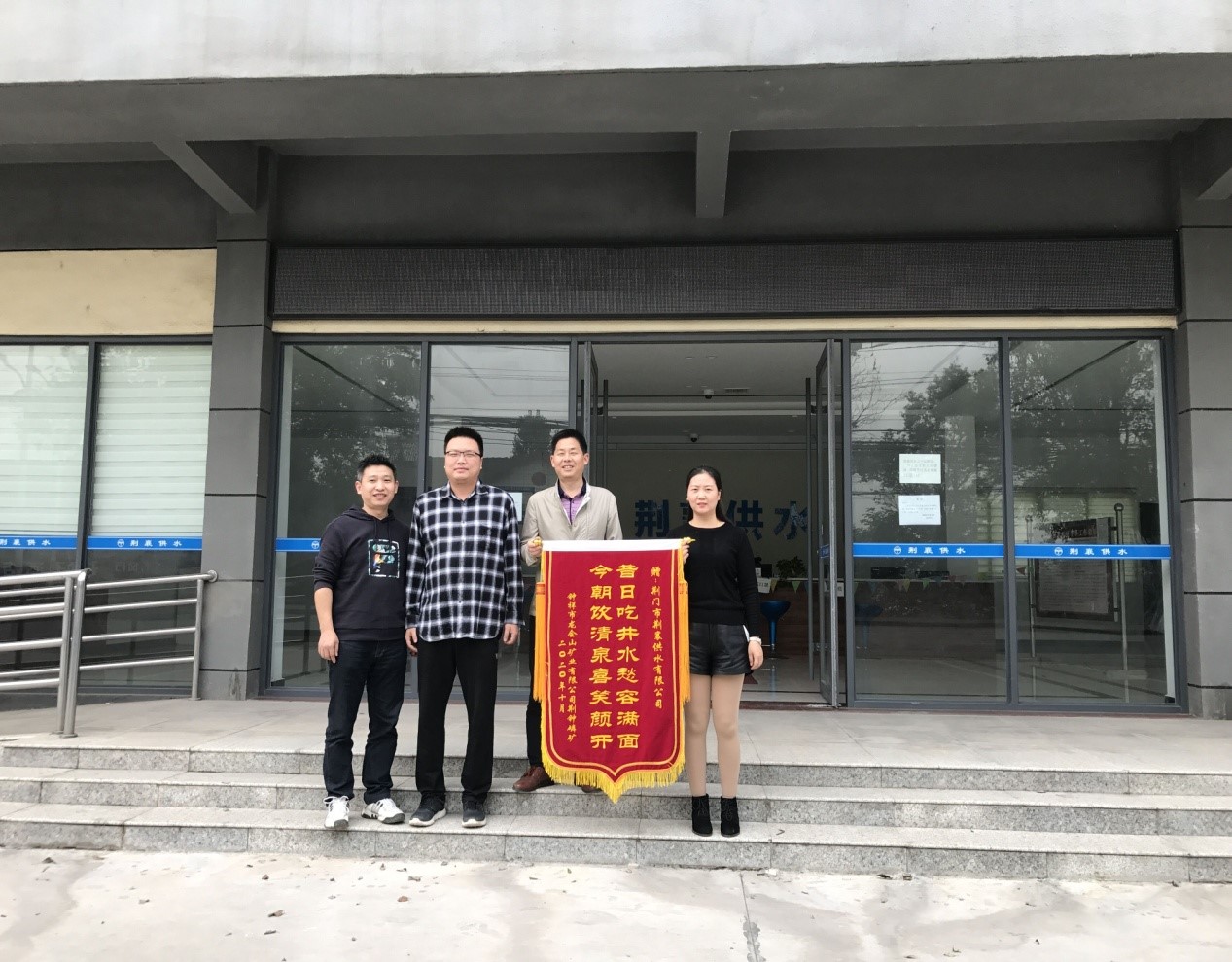 10月10日下午,鐘祥市龍會(huì)山礦業(yè)有限公司荊鐘磷礦礦長李綱專程來到荊襄供水公司,送來一面寫有“昔日吃井水愁容滿面 今朝飲清泉喜笑顏開”的錦旗,以表達(dá)對(duì)該公司為其高效開通自來水的謝意。
