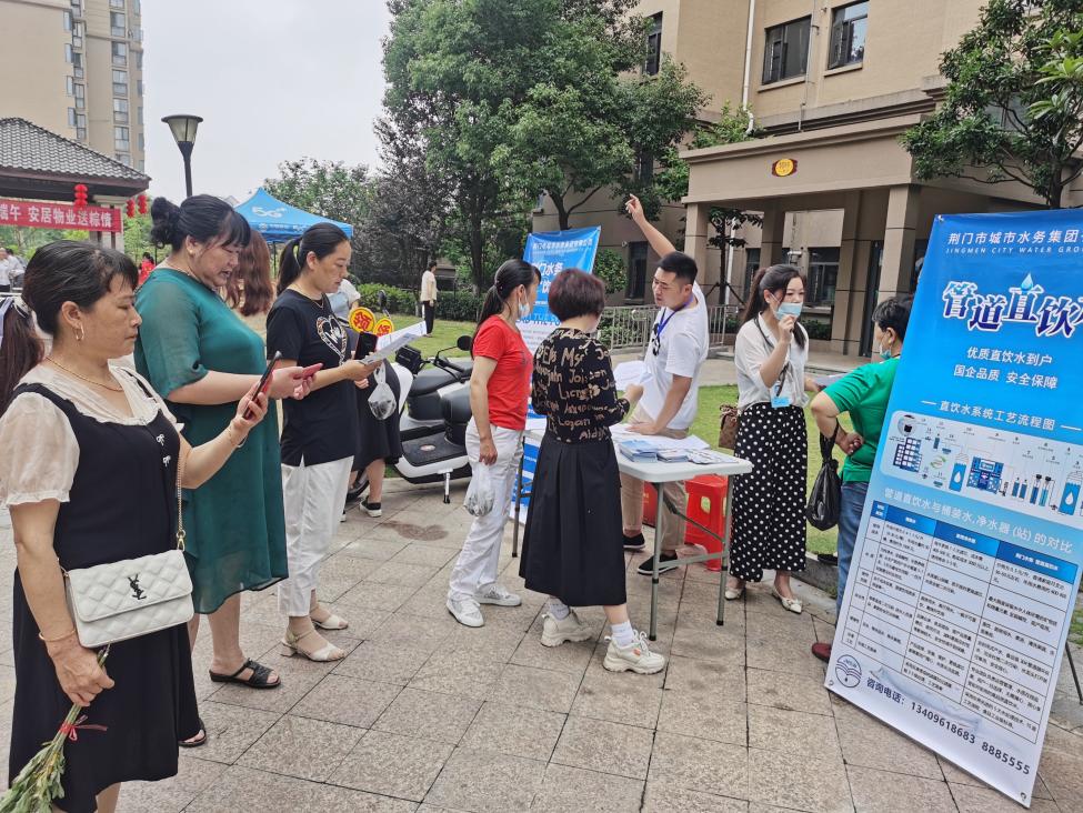 包粽子比賽活動結束后,現(xiàn)場的業(yè)主朋友們紛紛來到荊門水務管道直飲水宣傳展臺前,被“管道直飲水”這一新概念所吸引。“什么是管道直飲水?”“怎么安裝?怎么開戶?”“怎樣收費?”“水質有保障嗎?”……面對大家的提問,工作人員耐心地一一解答。